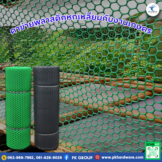ตาข่ายพลาสติกหกเหลี่ยมเป็นวัสดุอเนกประสงค์สำหรับงานเกษตร ผลิตจากพลาสติก HDPE คุณภาพสูง ทำให้มีน้ำหนักเบา ทนทาน ไม่เป็นสนิม และปลอดภัยต่อพืชและสัตว์ เหมาะอย่างยิ่งสำหรับใช้ทำรั้วกั้นสัตว์ โรงเรือนเพาะชำ หรือโครงให้ไม้เลื้อย ช่วยให้การทำเกษตรง่ายขึ้นและประหยัดค่าใช้จ่ายในระยะยาว