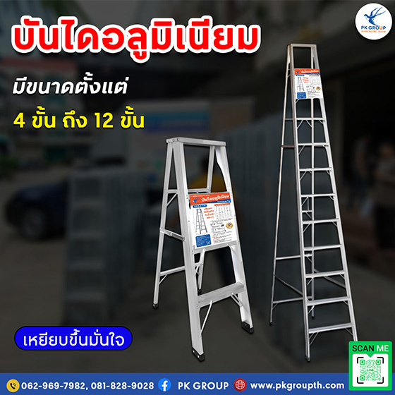 - ความหนาของอลูมิเนียม: เลือกบันไดที่ทำจากอลูมิเนียมคุณภาพดี มีความหนาที่เหมาะสม ไม่บุบหรือบิดงอง่าย